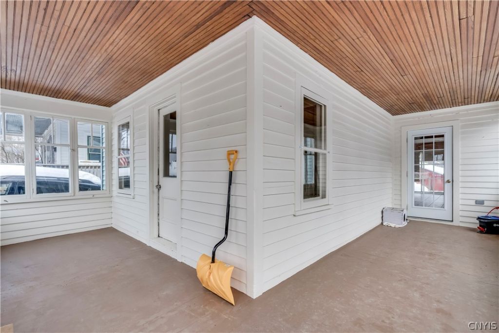Step into timeless charm with this beautifully maintained two-bedroom, 1.5-bath home located within the desirable village limits. The updated kitchen features sleek stainless-steel appliances, ample cabinetry, and a layout ideal for everyday living and entertaining. Natural light fills the home, highlighting its warm and inviting atmosphere throughout. Enjoy your morning coffee or evening unwind in the spacious enclosed front porch with glass windows - a perfect three-season retreat. Out back, you'll find a generous deck overlooking the yard, complete with a large storage shed and a 12' pool for summer fun and relaxation. Even better, this property includes waterfront/access to the beautiful St. Lawrence River - offering endless opportunities for boating, fishing, and enjoying river life just moments from your door. Whether you're looking for a year-round residence or a charming village getaway, this well-cared-for home is ready for its next chapter.